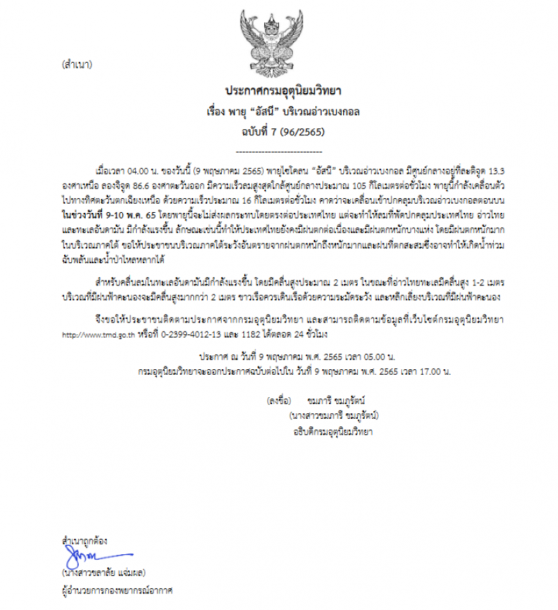 ประกาศ ณ วันที่ 9 พฤษภาคม พ.ศ. 2565 เวลา 05.00 น.
