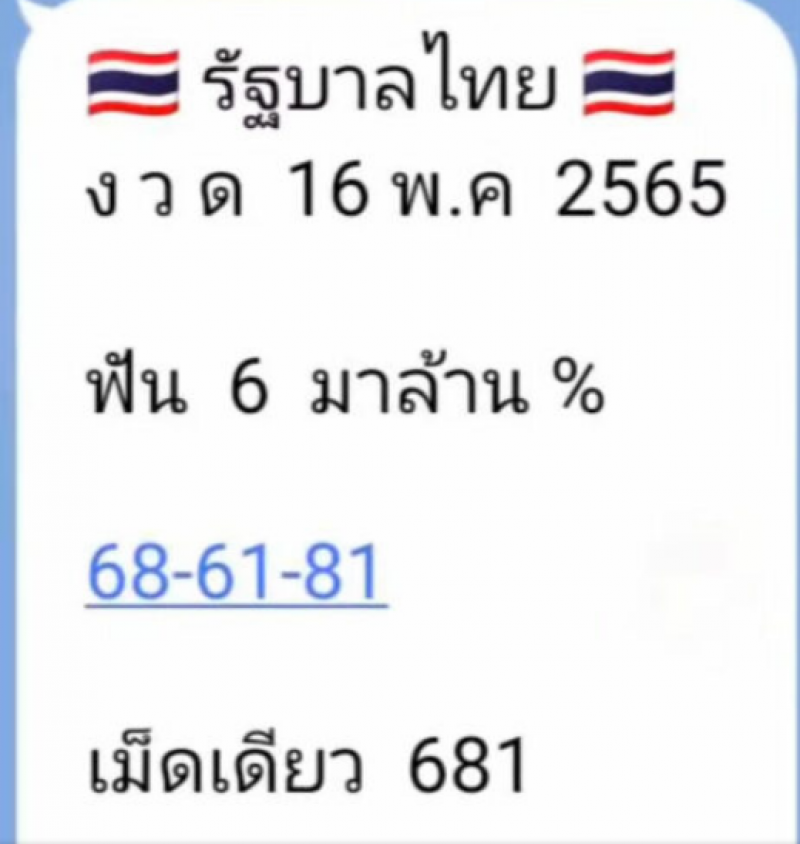 ล่าสุดผู้สื่อข่าวรายงานว่า แม่น้ำหนึ่ง ภิรดา หรือ หวยแม่น้ำหนึ่ง จัดหนักให้กับกลุ่มวีไอพี ลอตเตอรี่งวดนี้ 16 พฤษภาคม 2565 โดยงวดนี้เน้นไปที่ 6 ตัวเดียว ล้านเปอร์เซ็นต์ พร้อมแนะแนวทางลุ้น สองตัว สามตัว ให้คือเลข 68-61-81 และเลขสามตัวเต็งคือ 681 ให้สมาชิกในกลุ่มวีไอพี ได้ไปหาซื้อก่อนใคร