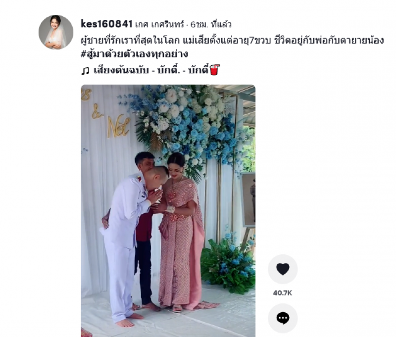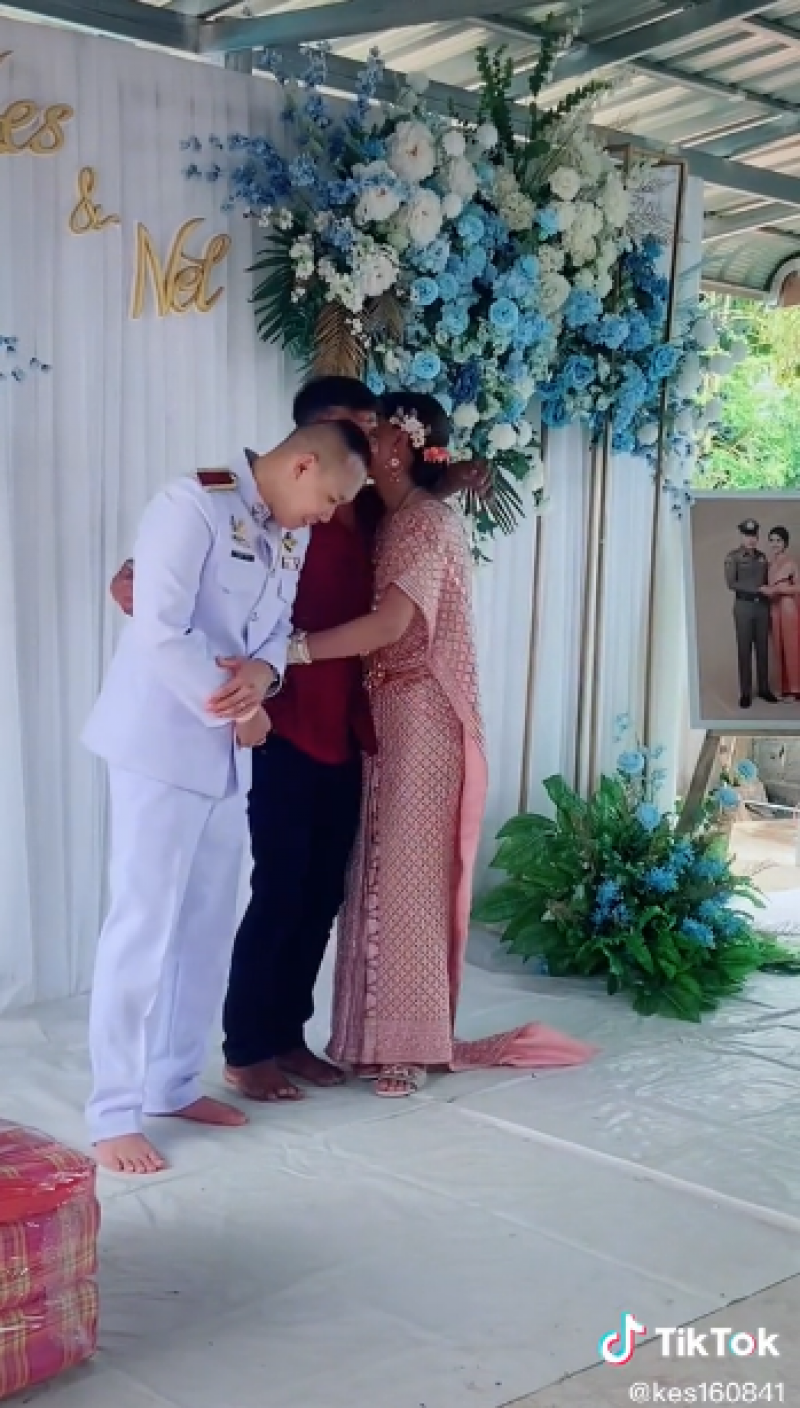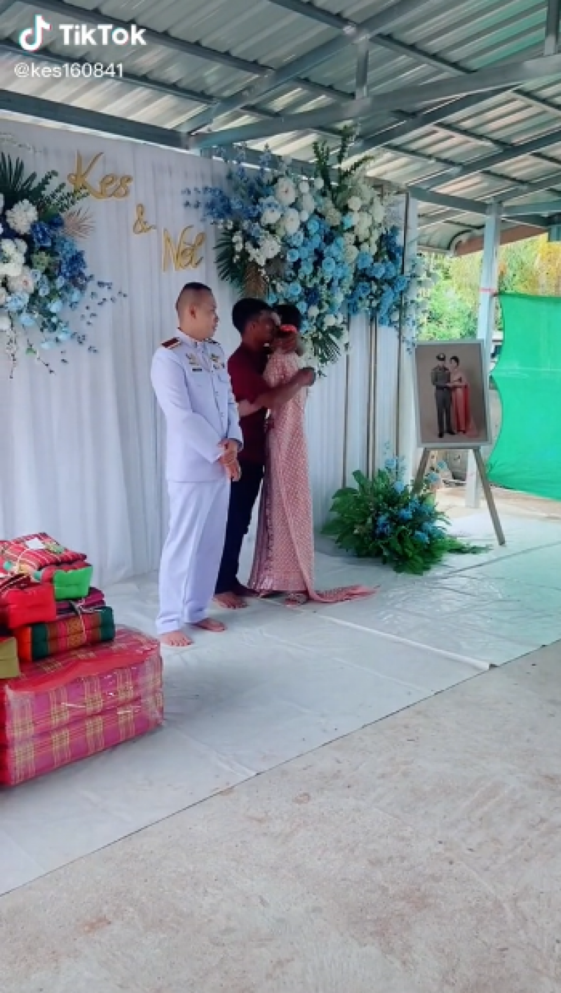 เรียกได้ว่ากลายเป็นเรื่องราวที่ชาวโซเชียลต่างเข้ามาแสดงความคิดเห็นกันเป็นจำนวนมาก หลังได้มีสมาชิกติ๊กต๊อกรายหนึ่ง ได้โพสต์คลิปงานแต่งที่เตฌมไปด้วยความอบอุ่น ซึ่งเจ้าสาวนั้นได้กอดผู้ชายอีกคน ที่ไม่ใช่เจ้าบ่าวแน่น ซึ่งผู้ชายเสื้อแดงที่มากอดนั้น ถึงขั้นน้ำตาซึม โดยเจ้าสาวได้อกมาเฉลยภายหลังว่าเป็นคุณพ่อนั่นเอง ซึ่งต้องบอกเลยว่าคุณพ่อหล่อมากๆเลยทีเดียวค่ะ โดยได้โพสต์เล่าเรื่องราวไว้ว่า ผู้ชายที่รักเราที่สุดในโลก แม่จากไปตั้งแต่อายุ7ขวบ ชีวิตอยู่กับพ่อ ตากับยาย และน้อง