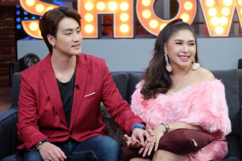 เอ้ เขามาคุยกับเราว่าเขารู้สึกโตขึ้น ก็คบมา 5 ปี คบมาตั้งแต่เขาอายุ 18 ไอดัง ตอนนั้นนะ ประกาศหมั้นอย่างเป็นทางการผ่านรายการนี้เลยคะ แล้วก็ขอโทษเพื่อนๆหลายคนศิลปินดาราที่ทักมาถามเยอะมาก ตอนนี้แค่แลกแหวนหมั้น แต่วันทำพิธีหมั้นที่เราหาฤกษ์หายามกันเรียบร้อยรับรองได้ไปแน่ๆ