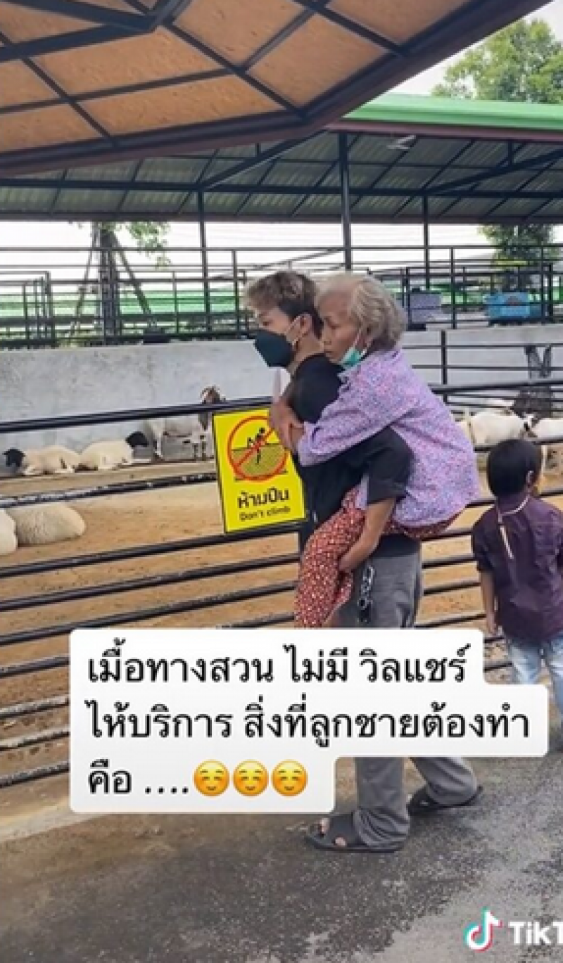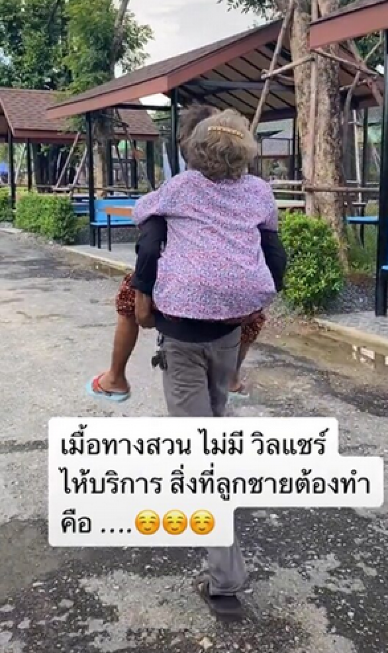 ลูกชายพาแม่วัยชราขึ้นหลัง เที่ยวทะเลครั้งแรกในชีวิต