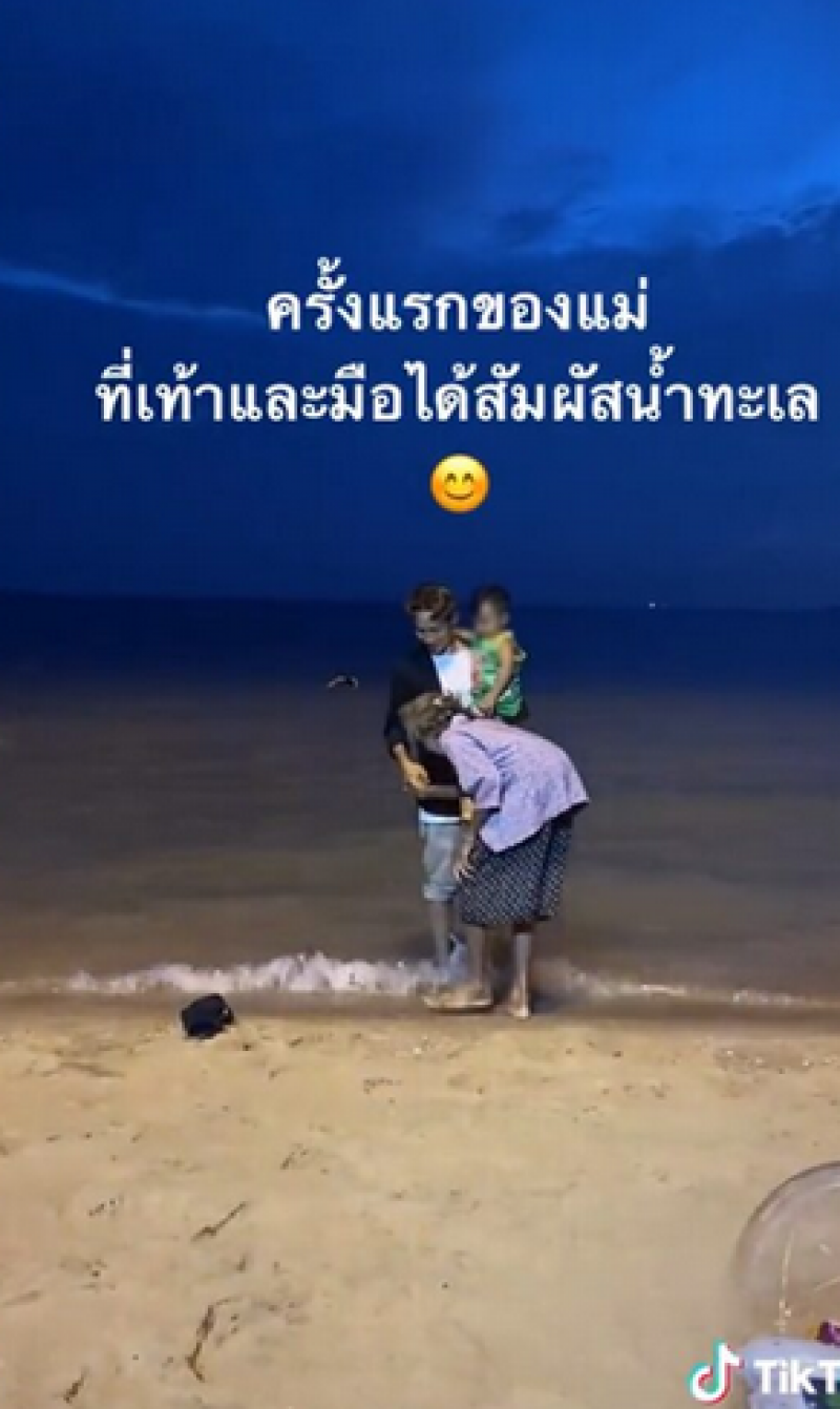เรียกได้ว่ากลายเป็นอีกหนึ่งเรื่องราวสุดซึ้งในโลกออนไลน์ หลังจากที่ผู้ใช้ tiktok ชื่อ 30dipo ได้มีการโพสต์วิดีโอสุดน่ารัก เมื่อพาแม่วัยชราไปเที่ยวทะเลเป็นครั้งแรก พร้อมบรรยายว่า ครั้งแรกของแม่ ที่เท้าและมือได้สัมผัสน้ำทะเล