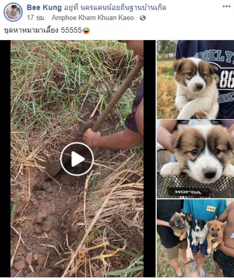 เรียกได้ว่าเป็นเรื่องราวที่มีคนต่างเข้ามาแสดงความคิดเห็นกันเป็นจำนวนมาก จากที่ผู้ใช้เฟซบุ๊กชื่อว่า Bee Kung ได้โพสต์คลิปวิดีโอความยาวประมาณ 1 นาที พร้อมระบุข้อความเอาไว้ว่า ขุดหาสุนัขมาเลี้ยง 55555