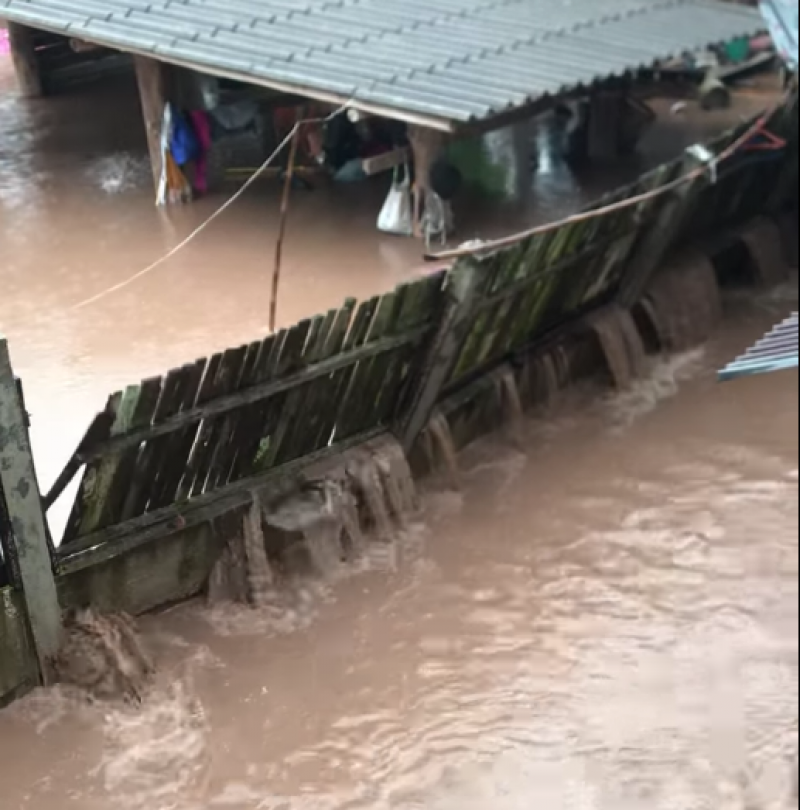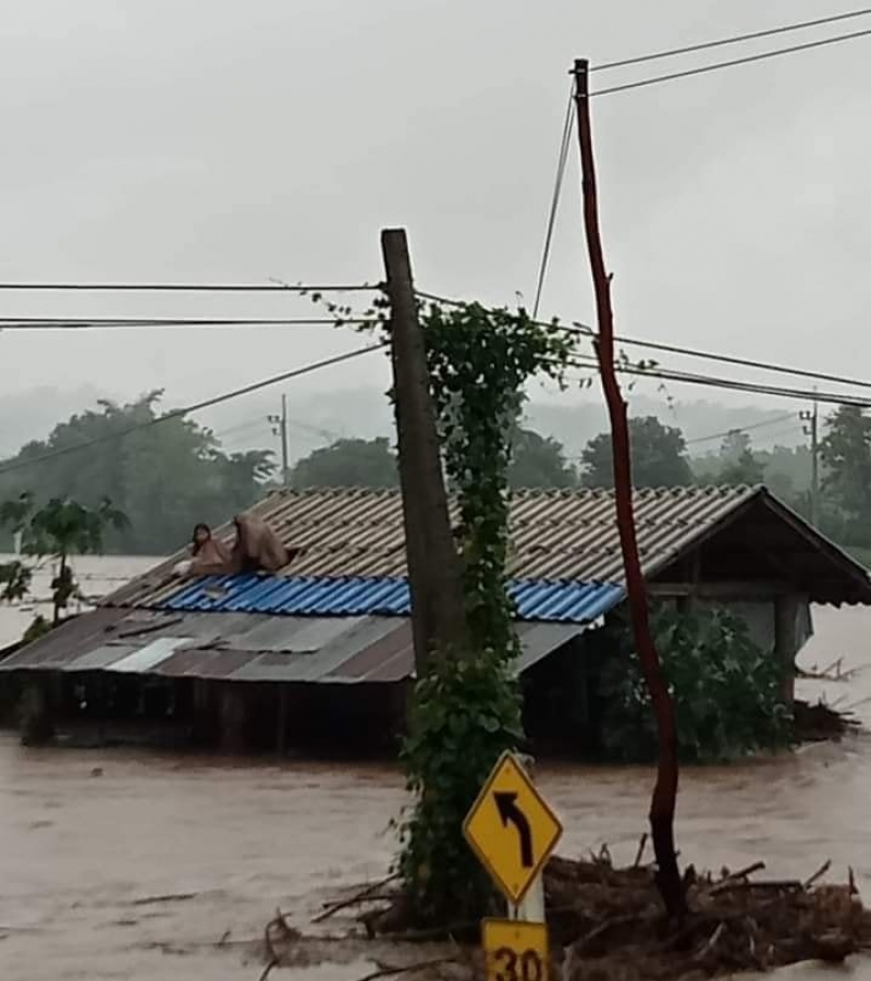 หนุ่มโพสต์คลิป ขอความช่วยเหลือ น้ำป่าท่วมบ้านต้องหนีขึ้นหลังคา