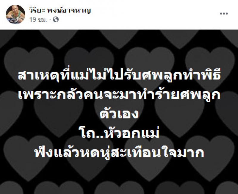 ต่อมา อุ๊บ วิริยะ ได้อัพเดทว่า ได้เลขบัญชีคุณแม่มาแล้ว แต่อยากเดินทางไปให้กับมือแม่เขามากกว่า