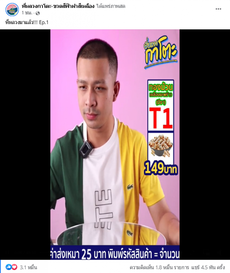 จากกรณีที่ นายพงศกร จันทร์แก้ว อดีตพระกาโตะที่มีข่าวกับสีกาตอง และปัญหาเรื่องเบิกเงินวัดไปปิดข่าวจนกลายเป็นคดียักยอกเงินวัด หลังจากสึกแล้ว ล่าสุด เพจ พี่หลวงกาโตะ ไลฟ์ขายสินค้าออนไลน์ เป็นครั้งแรก โดยขายขนมพื้นบ้าน ทองม้วน มันทอดกรอบ โดยมีแฟนคลับ เข้าร่วมชมไลฟ์ และอุดหนุนสินค้าจำนวนมาก