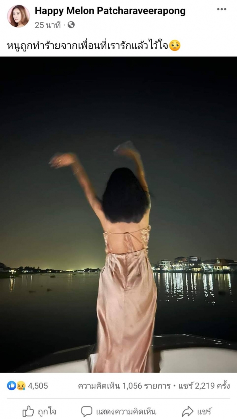 จากกรณีที่ในเฟซบุ๊กของนักแสดงสาว แตงโม นิดา ก็ได้มีการเคลื่อนไหวอีกครั้ง ด้วยการโพสต์รูปภาพพร้อมเขียนแคปชั่นปริศนาทิ้งท้ายไว้ ซึ่งรูปภาพที่ถูกโพสต์ เป็นภาพของหญิงสาวที่ยืนหันหลังโบกมืออยู่บนเรือกลางแม่น้ำเจ้าพระยา