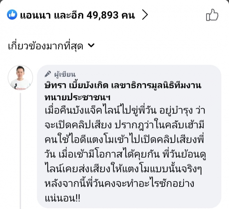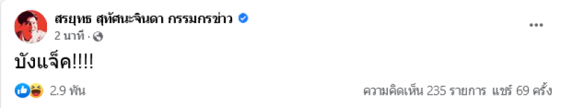 ทั้งนี้ ในเฟซบุ๊ก สรยุทธ สุทัศนะจินดา กรรมกรข่าว ก็ได้มีการโพสต์ชื่อ บังแจ็ค อีกด้วย