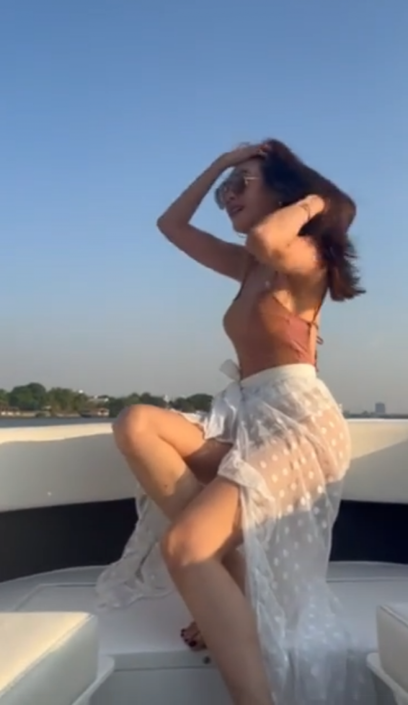 โดยมีการโพสต์คลิปขณะที่มีการลงเรือ พร้อมข้อความว่า เราฉี่ไม่ได้หลอกท้ายเรือ ขนาดเรือจอดโดนคลื่นซัด เธอยังต้องเกาะแขนผู้ชาย 2 คน ประคองเลย เราพูดไม่ได้ ก็อย่าใส่ร้ายเราไอ้เพื่อนรัก