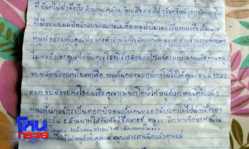 ล่าสุดทางด้านรายการโหนกระแส ที่ดำเนินรายการโดยคุณหนุ่ม กรรชัย กำเนิดพลอย เป็นพิธีการ ได้มีการเชิญทางด้าน กระติก หนึ่งในผู้ต้องหาบนเรือมาออกรายการ โดยได้มีการเผิดจดหมายกลางรายการ ซึ่งมีคนให้ข้อมูลว่าเป็นจดหมายของกระติก ที่สารภาพความจริงออกมา ซึ่งกระติกยืนยันว่าไม่ใช่จดหมายของตน