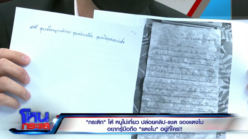 ทั้งนี้ หนุ่ม กรรชัย กำเนิดพลอย ได้ให้กระติก เขียนจดหมายแล้วนำลายมือมาเทียบกันกับจดหมายดังกล่าว ซึ่งดูแล้วลายมือไม่ตรงกัน เจ้าตัวยืนยันว่าไม่ใช้จดหมายของตนแน่นอน