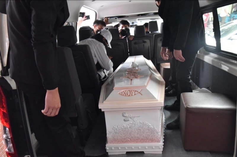 แต่ดีใจที่วันนี้ได้แต่งตัวให้แตงโมอย่างสวยงาม ใส่ชุดขาวซึ่งเป็นชุดของแตงโม รองเท้าส้นสูงคู่โปรดที่มีโบว์ พร้อมเครื่องประดับแหวน สร้อยคอ ต่างหู กำไลที่เป็นเพชร และใส่มงกุฎที่ตนทำเองพร้อมไปเป็นนางฟ้าบนสวรรค์ ส่วนดอกไม้ในหีบศพก็เป็นกลีบกุหลาบ ส่วนเรื่องการเก็บอัฐิ ขอให้เสร็จสิ้นพิธีฌาปนกิจก่อน