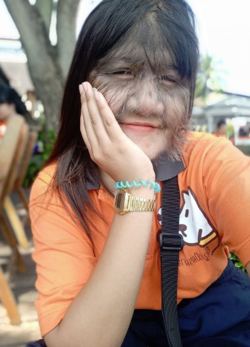 น้องแนท เคยเปิดใจว่า หลายคนที่ได้พบเจอกับเธอ ต้องประหลาดใจกับสิ่งที่พบเห็น บางคนถึงกับและตกใจ ก็เคยมีบางคนเรียกหนูว่า หน้าลิง แต่ตอนนี๋พวกเขาก็ไม่ได้เรียกกันแล้ว กับสิ่งที่เกิดขึ้น เวลาผ่านไป น้องก็โตเป็นสาวแล้ว แม่และพ่อ ก็ได้ตัดออกให้อยู่บ่อยครั้งที่หน้า แต่ดูเหมือน มันจะไม่ใช่ปัญหากับการใช้ชีวิตของเธอแล้ว เพราะเธอค่อนข้างชิน และคนรอบกายก็ชินไปแล้วด้วย แพทย์ เคยออกมายืนยันและบอกว่า น้องน่าจะเป็นไปตลอด