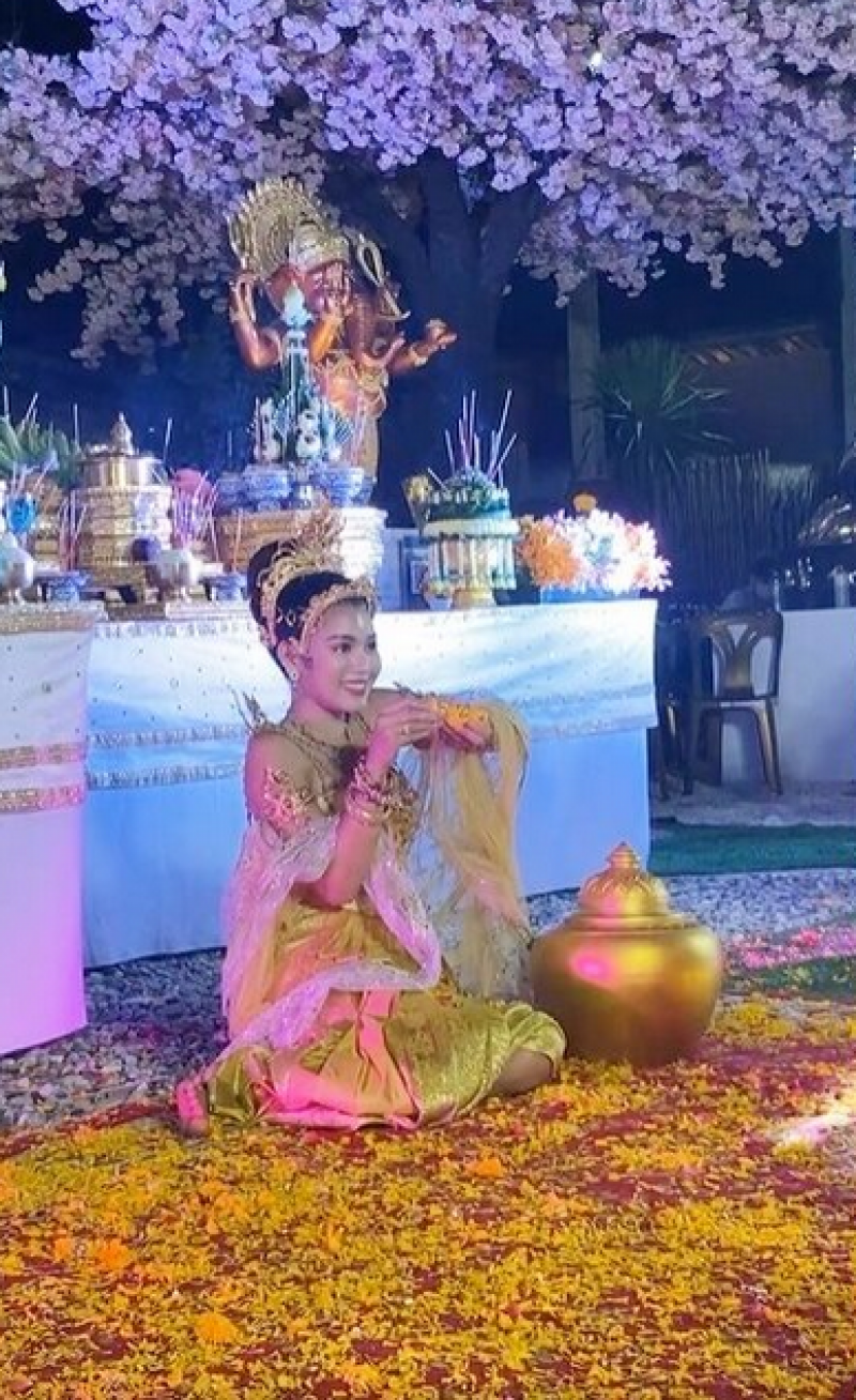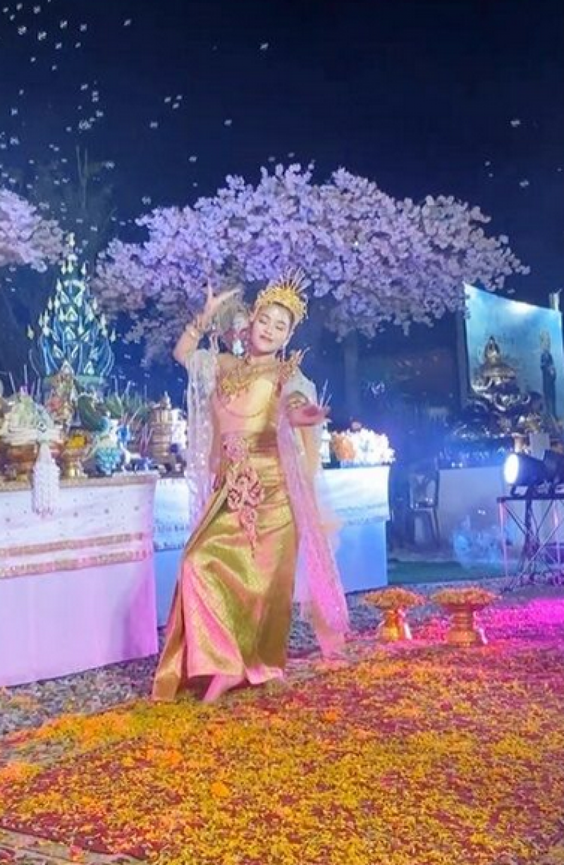 โดยก่อนหน้านั้น ได้บอกด้วยว่า วันนี้เจอกับเรา 2 คนได้ที่คุ้มนะหน้าทองนะคะ รำถวายปู่อีกแล้ว ด้วยบุญที่ได้ทำมาวันนี้ลูกหลานได้ทำในสิ่งที่อยากทำ ได้รำถวายเทพเทวา รำถวายองค์ปู่สมใจแล้ว