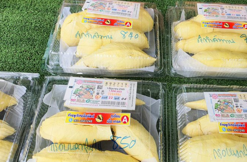 วันที่ 1 มิ.ย.2565 มีรายงานว่า ในช่วงวันออกรางวัลสลากกินแบ่งรัฐบาล ส่งผลให้ยอดการขายทุเรียนไม่คึกคักเท่าที่ควร แต่มีพ่อค้าทุเรียนรายหนึ่งในจ.กำแพงเพชร คิดกระตุ้นยอดขายในวันหวยออก ซื้อทุเรียนแถมลอตเตอรี่ ให้ลูกค้าที่แวะเวียนมาอุดหนุนได้ลุ้นรางวัลกัน โดยพบว่าฃที่ผ่านมา เคยมีลูกค้าถูกรางวัลไปแล้ว