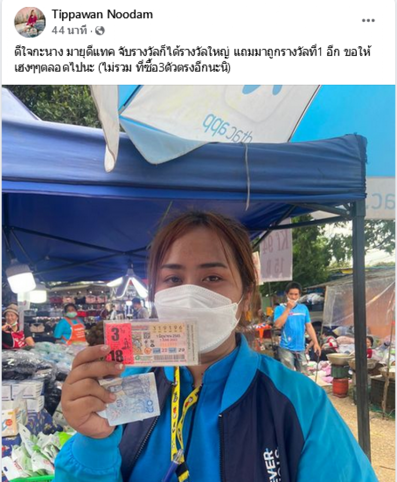 ล่าสุดขอแสดงความยินดีด้วยนะ สาวดีแทคถูกรางวัลที่ 1 โดยได้โพสต์ข้อความระบุว่า ดีใจกะนาง มายุดีแทค จับรางวัลก็ได้รางวัลใหญ่ แถมมาถูกรางวัลที่1 อีก ขอให้เฮงๆๆตลอดไปนะ (ไม่รวม ที่ซื้อ3ตัวตรงอีกนะนิ)