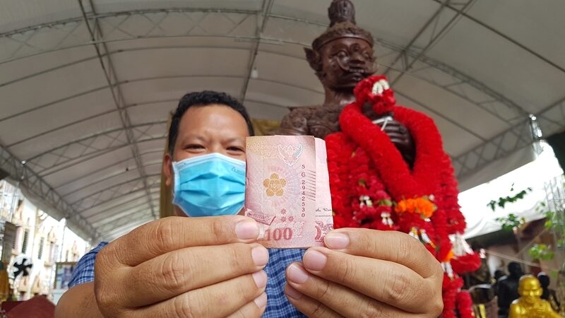 โดยก่อนเดินทางกลับ ตนได้แลกเปลี่ยนธนบัตรกลับไปเป็นเงินขวัญถุง เพื่อนำเลขนั้นไปเสี่ยงทาย ได้หมายเลข 5 G 2 9 4 2 5 3 0 ทั้งนี้ ก็แล้วแต่โชคของใครของมัน ที่สำคัญจะนำเงินรางวัลที่ได้มาซื้อขนมแจกเด็กนักเรียนอีกด้วย