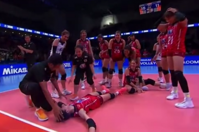 เซ็ตที่ 5 ซึ่งเป็นเซ็ตตัดสิน สาวไทยยังคงเน้นเกมเร็ว และความหลากหลายในเกมบุกเพื่อหนีบล็อกที่สูงใหญ่ของจีน สุดท้ายสาวไทยเอาชนะได้สำเร็จ 15-11 คะแนน
