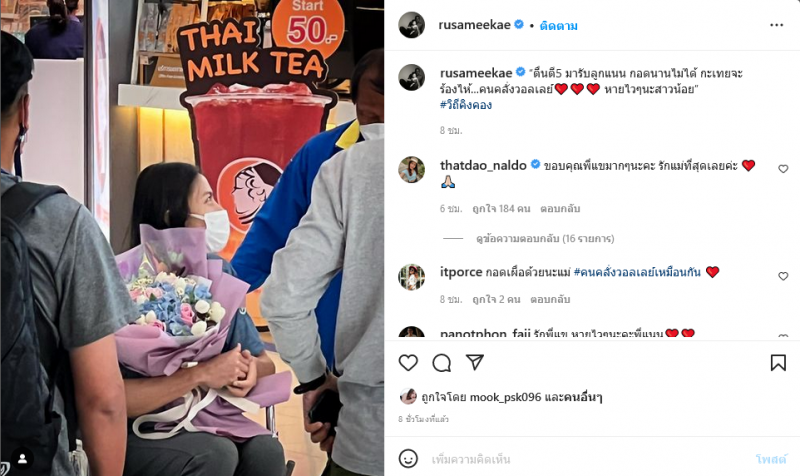 นอกจากแฟนๆ วอลเลย์จะมารับและให้กำลังใจทัดดาวแล้ว ยังมีนักแสดงชื่อดังอีกคน ซึ่งเธอคนนี้ขึ้นชื่อว่าเป็นดาราอีกคนที่เป็นแฟนตัวยงวอลเลย์บอลไทยก็ว่าได้นั่นก็คือ รัศมีแข ฟ้าล้นเกื้อ ซึ่งล่าสุด รัศมีแขได้โพสต์ผ่านอินสตาแกรมส่วนตัวพร้อมแท็กไปหาทัดดาวว่า ตื่นตี5 มารับลูกแนน กอดนานไม่ได้ กะเทยจะร้องไห้คนคลั่งวอลเลย์ หายไวๆนะสาวน้อย #วิถีคิงคอง