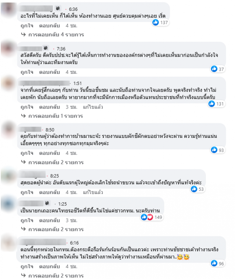 ทั้งนี้ หากเปรียบเทียบยอดคนดู และ ผู้ที่เข้ามาแสดงความคิดเห็น จะพบว่า ประชาชนเข้าไปดูการไลฟ์ของนายชัชชาติ เป็นจำนวนมาก โดยไลฟ์ล่าสุด ที่นายชัชชาติ ลงตรวจสอบพื้นที่ สีลมซอย 2 มีคนดูมากถึง 2.1 แสนครั้ง