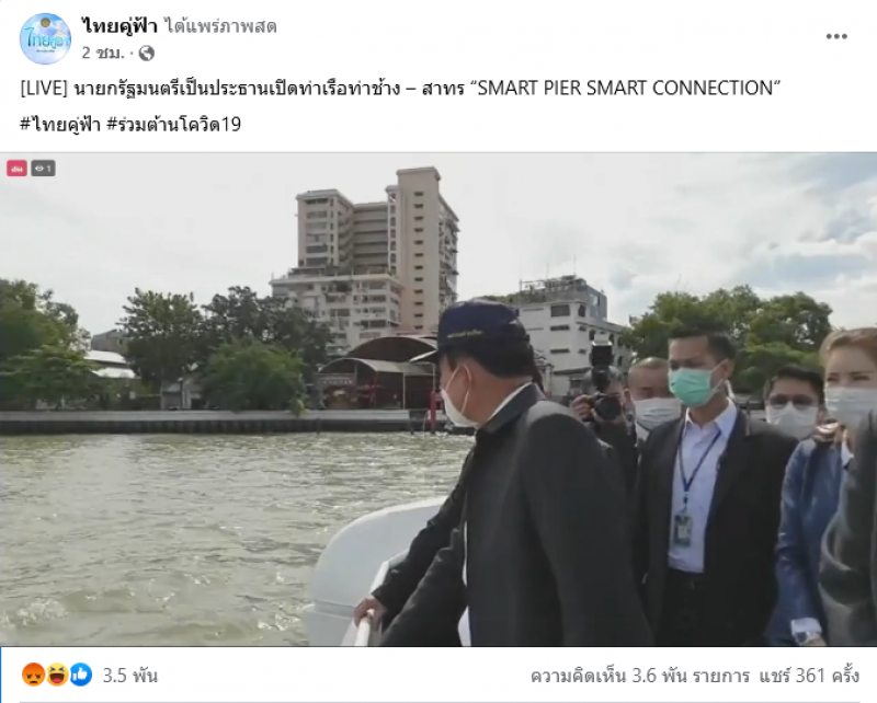วันที่ 8 มิ.ย.65 เพจ ไทยคู่ฟ้า ไลฟ์สด นายกรัฐมนตรีเป็นประธานเปิดท่าเรือท่าช้าง - สาทร SMART PIER SMART CONNECTION #ไทยคู่ฟ้า ซึ่งพบว่ามีประชาชนเข้าไปแสดงความคิดเห็นเป็นจำนวนมาก โดยส่วนหนึ่งเข้าไปชื่นชมการทำงานของ พล.อ.ประยุทธ์ จันทร์โอชา