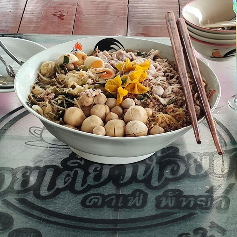 ร้านก๋วยเตี๋ยวห้อยขาคาเฟ่พัทยา ตั้งอยู่ที่ ต. หนองปรือ อ. บางละมุง ชลบุรี เปิดทุกวัน เวลา 10.00 น. - 22.00 น.