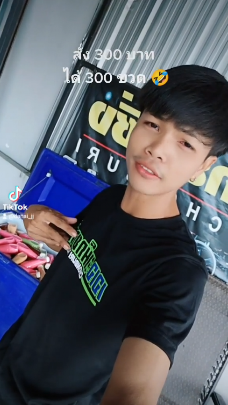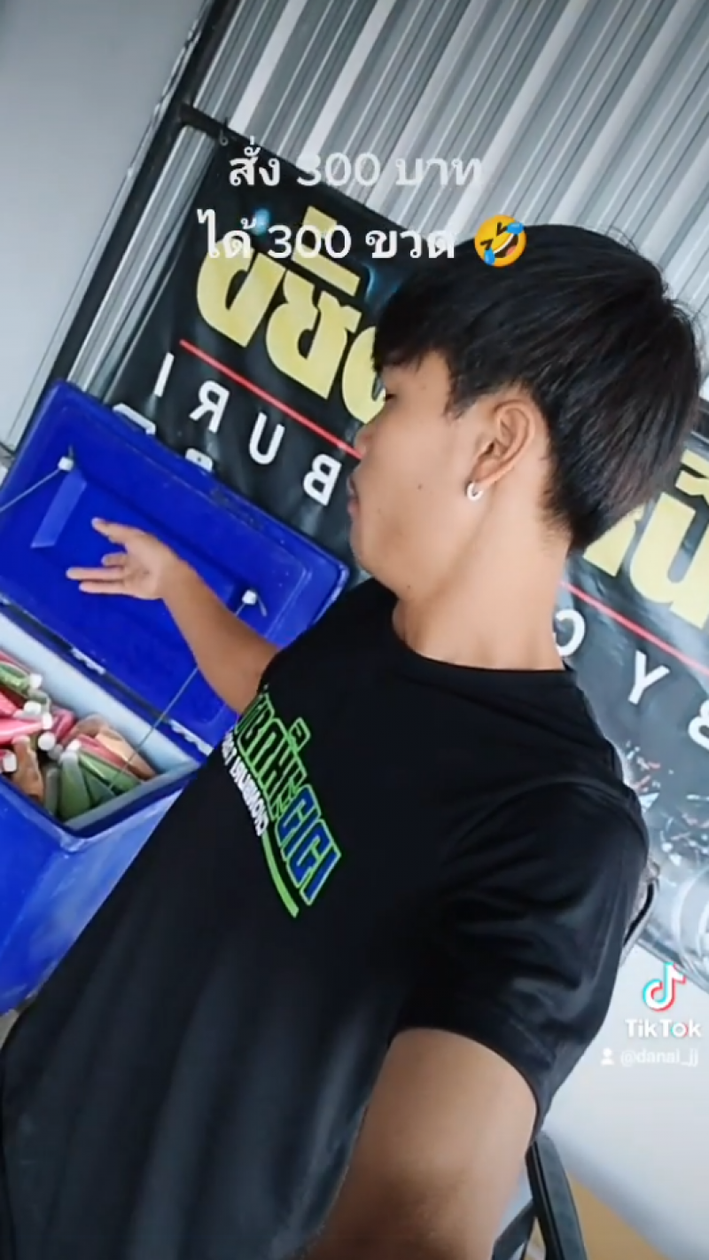 เมื่อตนกลับมาถึงร้านต้องตกใจ เนื่องจากเพื่อนนำถังน้ำแข็งใบใหญ่ซึ่งแช่ชานมและน้ำหวานมาส่งให้ที่ร้านจำนวน 300 ขวด ตนเองจึงบอกเพื่อนว่าสั่งชานมและน้ำหวานหมายถึง 300 บาท ไม่ใช่ 300 ขวด