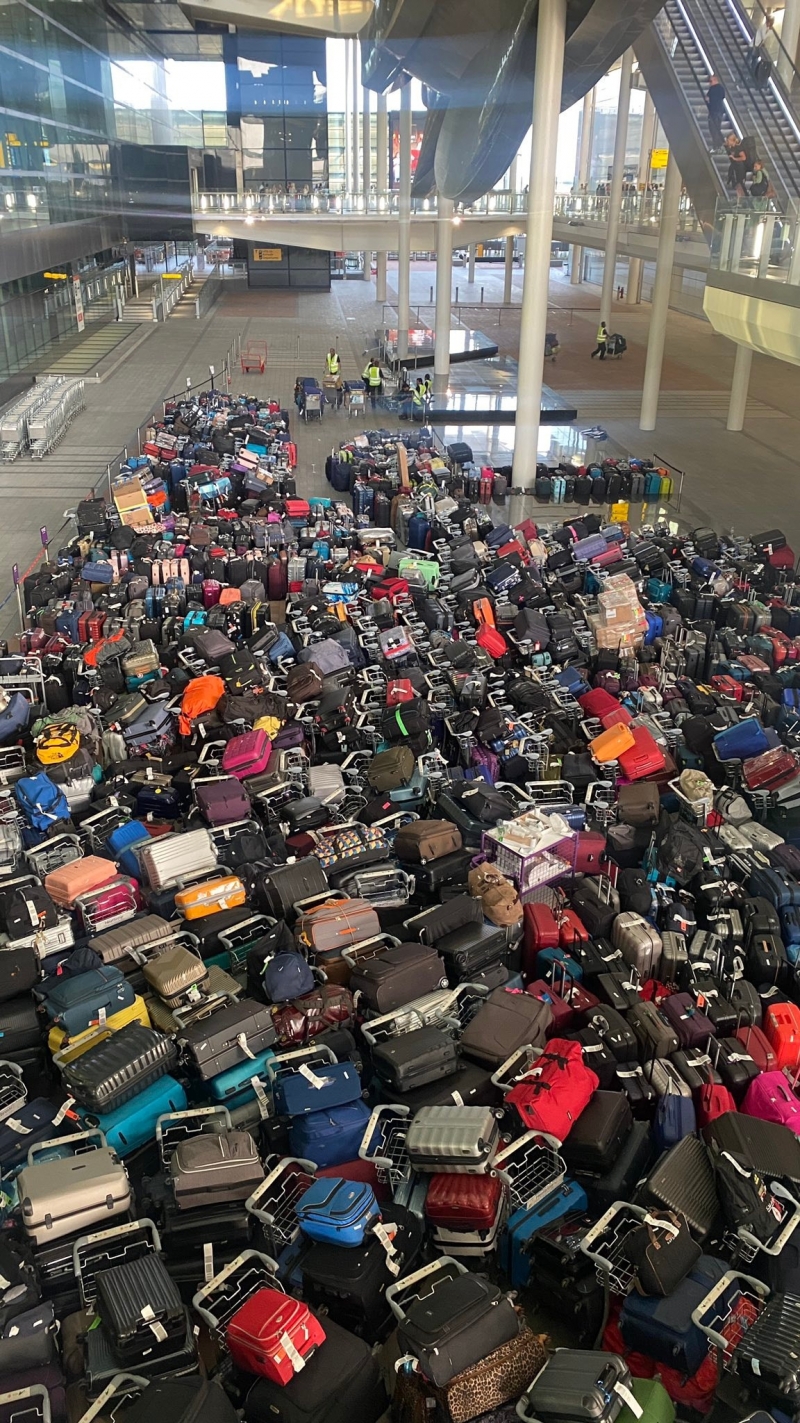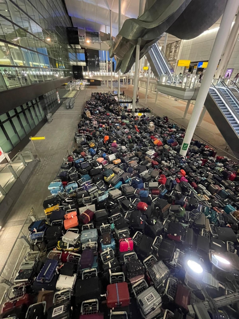เรียกได้ว่ากลายเป็นไวรัลต่างประเทศ เกิดภาพเหตุการณ์ที่ไม่น่าเกิดขึ้น เมื่อ มีกระเป๋าเดินทางขนาดใหญ่ของผู้โดยสารถูกวางไว้นอกอาคารผู้โดยสาร จำนวนมากจนอาจเรียกได้ว่าเป็นกองกระเป๋าเดินทางจำนวนมหาศาล เนื่องจากปัญหาการจัดการด้านระบบของสนามบินฮีทโธรว์