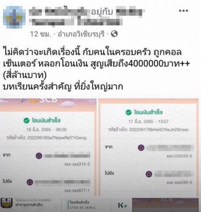 ลุงแจ้งความ ถูกแก๊งคอลเซ็นเตอร์ หลอกโอนไป 4 ล้าน