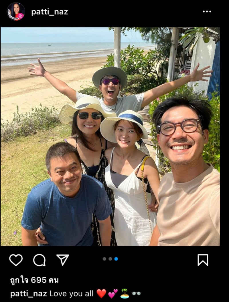 เนื่องจากคุณแม่ได้โพสต์รูปภาพขณะไปเที่ยวทะเลกับครอบครัว ลงในอินสตาแกรมส่วนตัว ซึ่งมีลูกชายพร้อมกับแฟนสาวคนใหม่ และนักแสดงหนุ่ม "นัท อติรุจ" เพื่อนซี้ลูกชายร่วมทริปครั้งนี้ด้วย พร้อมกับใส่แคปชั่นประกอบภาพว่า Love you all