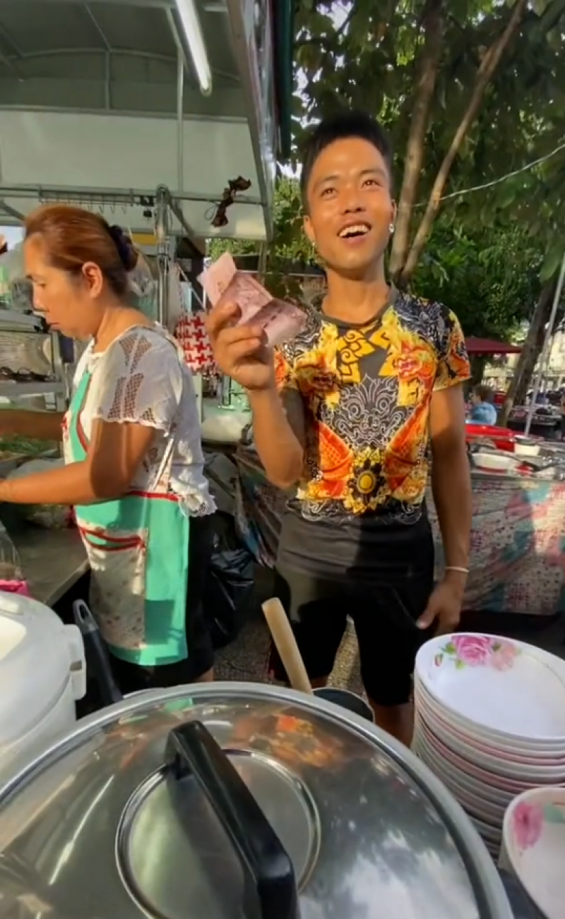 หนุ่มเจ้าของช่องได้ถามพนักงานร้านอาหารไปว่า ก๋วยเตี๋ยวอร่อยมั้ยและมีราคาเท่าไหร่ ซึ่งพนักงานตอบกลับมาว่า อร่อยและมีราคา 50 บาท เขาจึงแสร้งทำเป็นว่ามีเงินไม่พอ มีเพียง 35 บาทเท่านั้น สามารถทานก๋วยเตี๋ยวได้หรือไม่ ซึ่งพนักงานตอบกลับพร้อมรอยยิ้มว่า ได้