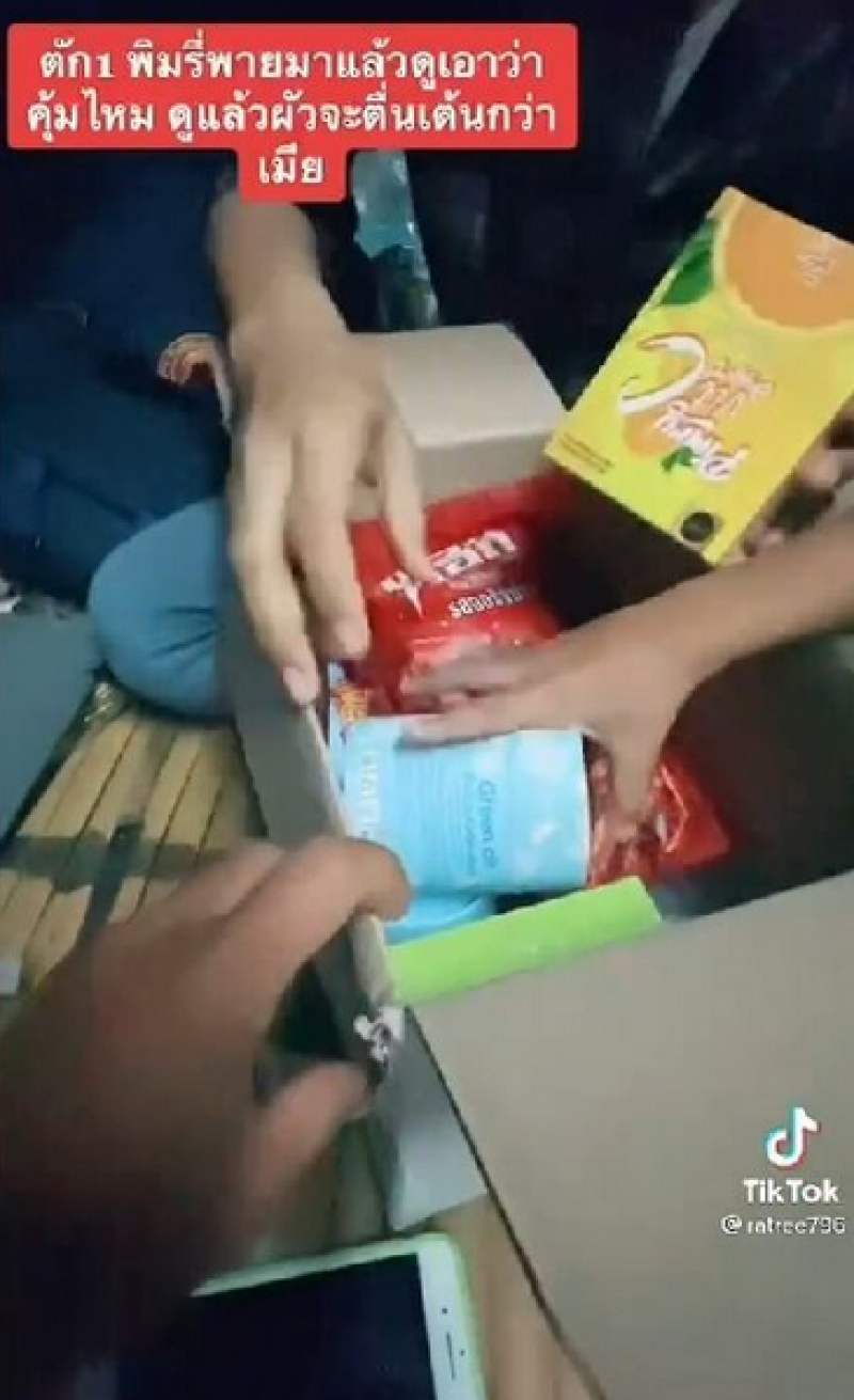 น.ส.ออย กล่าวว่า ตนอุดหนุนตัก 1 ของพิมรี่พายในราคา 500 บาท เพราะเห็นว่าดูน่าสนุกและเห็นในไลฟ์สดหลายคนก็ได้มือถือได้แหวนทองก็เลยลองเสี่ยงดวงดู เมื่อสินค้ามาส่งปรากฏว่าตนได้พริกทอด ก๋วยจับญวน ไฟเบอร์ วิตามิน คัตเตอร์บัต 2 กระปุก และแผ่นทอง พอเห็นเป็นซองทองก็รู้สึกดีใจเพราะตอนแรกคิดว่าน่าจะเป็นแหวนทอง แต่เปิดออกมาแล้วได้เป็นแผ่นทองเท่านั้น