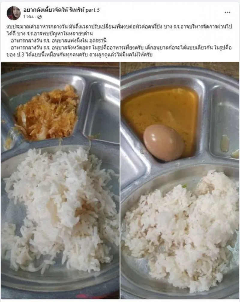 นายเจษฎา ปานะถึก ผอ.ศูนย์ดำรงธรรม จ.อุดรธานี ระบุว่า จากการตรวจสอบพบว่า ข้อมูลที่ร้องเรียนเข้ามาไม่เป็นไปตามที่โพสต์ เพราะโรงเรียนมีคณะกรรมการตรวจสอบอาหารทุกวัน วันนี้ (วันที่เข้าไปตรวจ) โรงเรียนทำข้าวผัดและเงาะ
