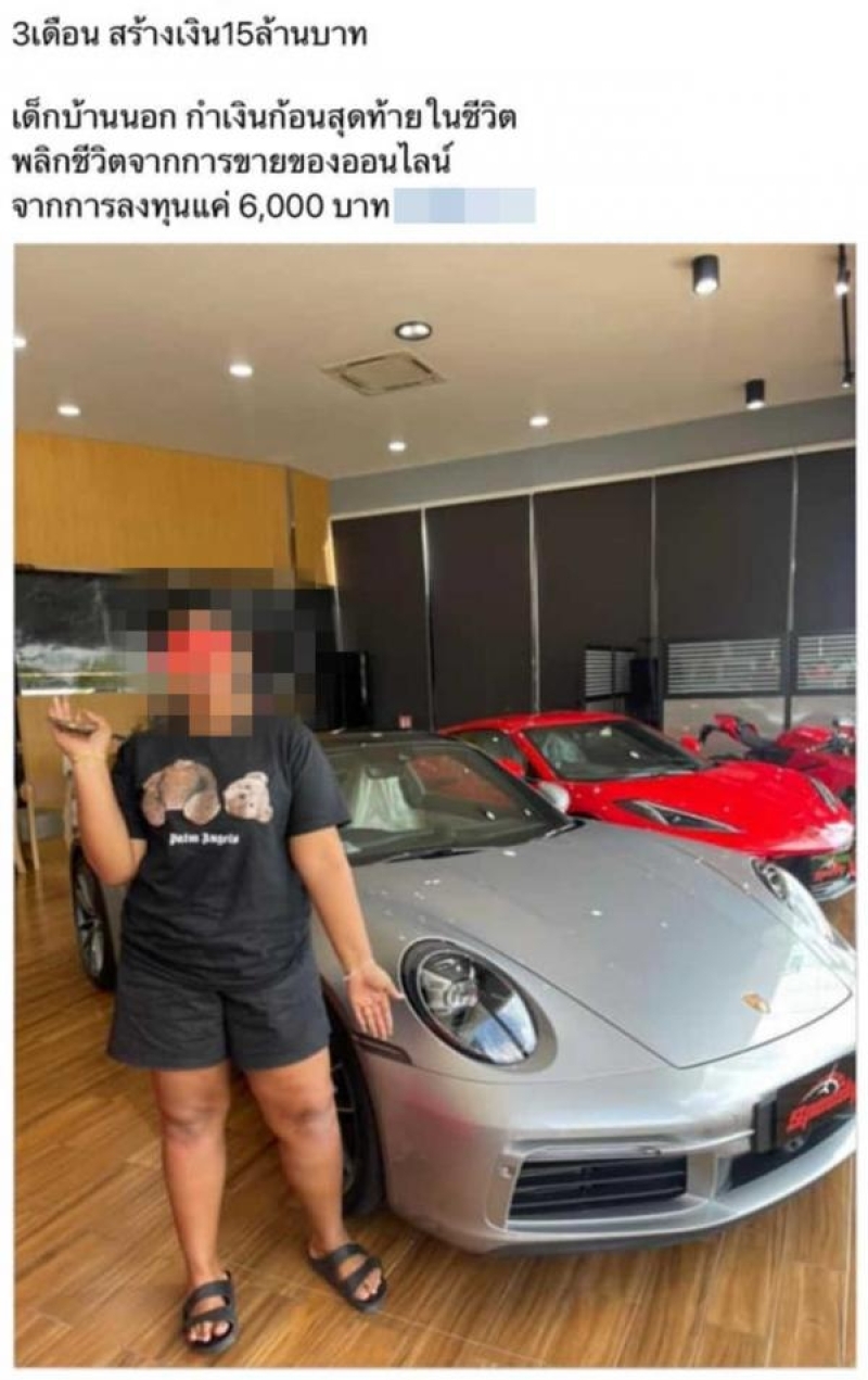 จากกรณีไวรัลในโลกโซเชียล เมื่อผู้ใช้เฟซบุ๊กรายหนึ่ง ได้โพสต์ภาพหญิงคนหนึ่งคู่กับรถหรูในโชว์รูม พร้อมแคปชั่นระบุว่า 3 เดือน สร้างเงิน 15 ล้านบาท เด็กบ้านนอก กำเงินก้อนสุดท้ายในชีวิต พลิกชีวิตจากการขายของออนไลน์ จากการลงทุนแค่ 6,000 บาท