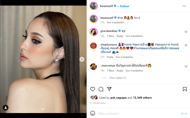 กระทั่งล่าสุดทางด้านของนักแสดงหญิงก็ได้มีการให้สัมภาษณ์กับผู้สื่อข่าวยอมรับว่าโพสต์ดังกล่าวน่าจะหมายถึงตัวเธอเอง แต่เรื่องทั้งหมดนั้นตรงกันข้าม พร้อมเล่าว่าตนได้รับแม่บ้านมาสองคนเพื่อดูแลสุนัขและแมว โดยให้ทั้งสองทดลองงานและกินอยู่ที่บ้านก่อน