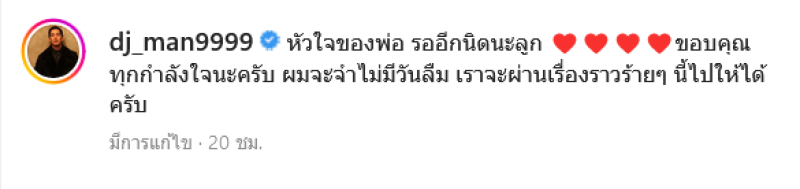 ดีเจแมน เคลื่อนไหวล่าสุด โพสต์ถึงลูกสาว