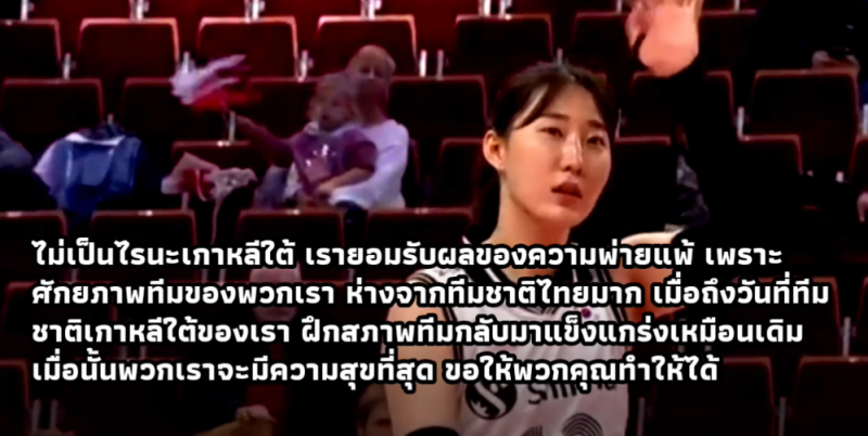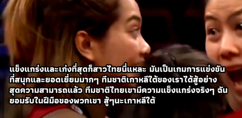 ทั้งนี้ เราจะไปฟังความคิดเห็นบางส่วนของชาวเกาหลีใต้ ว่าพวกเขาจะมีทัศนคติอย่างไร หลังจากที่ทีมสาวไทยสามารถเอาชนะไปได้อย่างขาดลอย 3-0 เซต โดยเป็นความคิดเห็นบางส่วนจากช่อง DOO BALL เราไปดูกันเลยจ้า