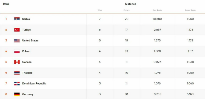 โดยสายเอฟ มีทีมที่การตันเข้ารอบแน่นอนแล้วคือ วอลเลย์บอลหญิงเซอร์เบีย ตุรกี และสหรัฐอเมริกา เหลืออันดับที่ 4 ที่ต้องแย่งกัน การแข่งขันวอลเลย์บอลหญิงทีมชาติไทย อีกสองนัดที่เหลือมีแต่ทีมที่ยากอย่าง สหรัฐอเมริกา และเซอร์เบีย ซึ่งไทยต้องชนะทั้งสองทีม และลุ้นให้โปแลนด์แพ้ในนัดต่อๆไป จึงจะมีโอกาสลุ้นเข้ารอบต่อไป