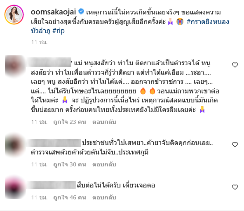 ล่าสุดในอินสตาแกรมของ อ๋อม สกาวใจ ได้มีการเคลื่อนไหวแสดงความอาลัย รวมตั้งคำถามถึงกรณีที่เกิดขึ้น ซึ่งมีชาวโซเชียลเห็นด้วยและเข้ามาแสดงความคิดเห็นกันเป็นจำนวนมาก