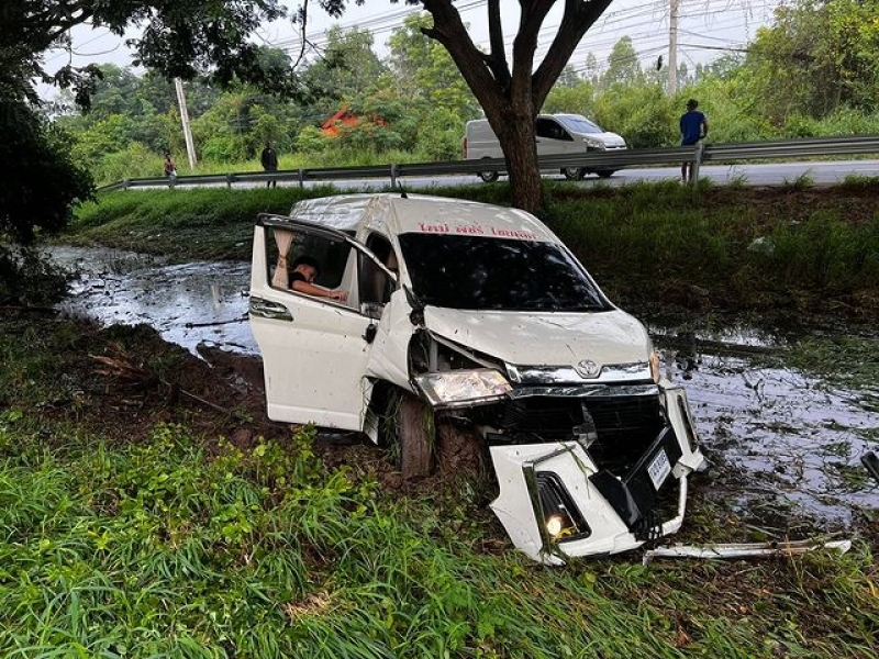 หมอลำซิ่งชื่อดัง เกิดเหตุรถตู้ ลงข้างทาง