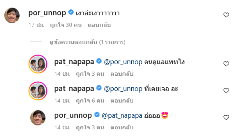 ล่าสุดในอินสตาแกรมของสาวแพท ก็ได้มีการอัพเดตภาพในอ่างจากุชชี่กับลูกชายสุดรัก แต่งานนี้ชาวโซเชียลตาดี โฟกัสเห็นเงาคล้ายผู้ชายในกระจก แม้แต่หนุ่ม ปอ อรรณพ ที่เคยมีข่าวคู่จิ้นกับแพท ถึงกับต้องเข้ามาคอมเม้นท์ว่าเงาใครในกระจก สาวแพทก็ได้ตอบกลับว่าเป็นเงาของคนที่ดูแล ทำเอาชาวโซเชียลถึงกับสงสัย คนดูแลคนนั้นเป็นใครกันนะ