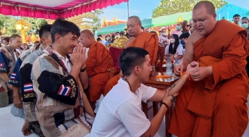 ขณะที่พระครูพนมปรีชากร หรือพระครูไก่ ที่เคยถูกลอตเตอรี่รางวัลที่1 จำนวน 18ล้านบาท ยังได้มอบวัตถุมงคลเป็นเหรียญพระยมกปาฏิหาริย์ วัดพระธาตุพนม โดยพระครูไก่บอกว่า เพื่อให้งานว่ายน้ำพรุ่งนี้เกิดปาฏิหาริย์ จึงมอบให้โตโน่ ก่อนที่พระสงฆ์ 3รูปจะนำฝ้ายมาผูกข้อต่อแขนให้กับโตโน่ และคณะนักว่ายน้ำ เพื่อความเป็นสิริมงคล