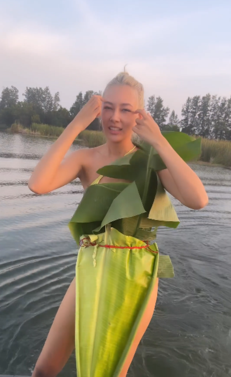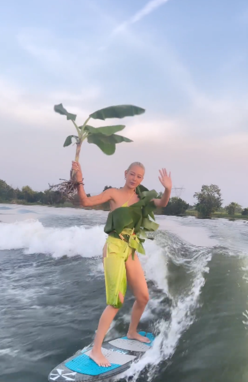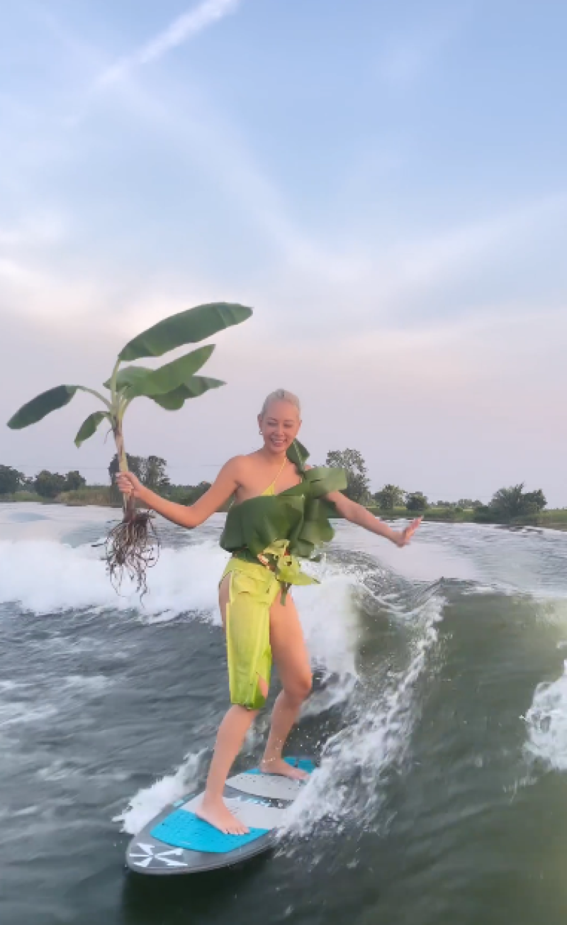 แซมมี่ เคาวเวลล์ นุ่งใบตองฉลองวันลอยกระทง โชว์ลีลาบนเซิร์ฟบอร์ด