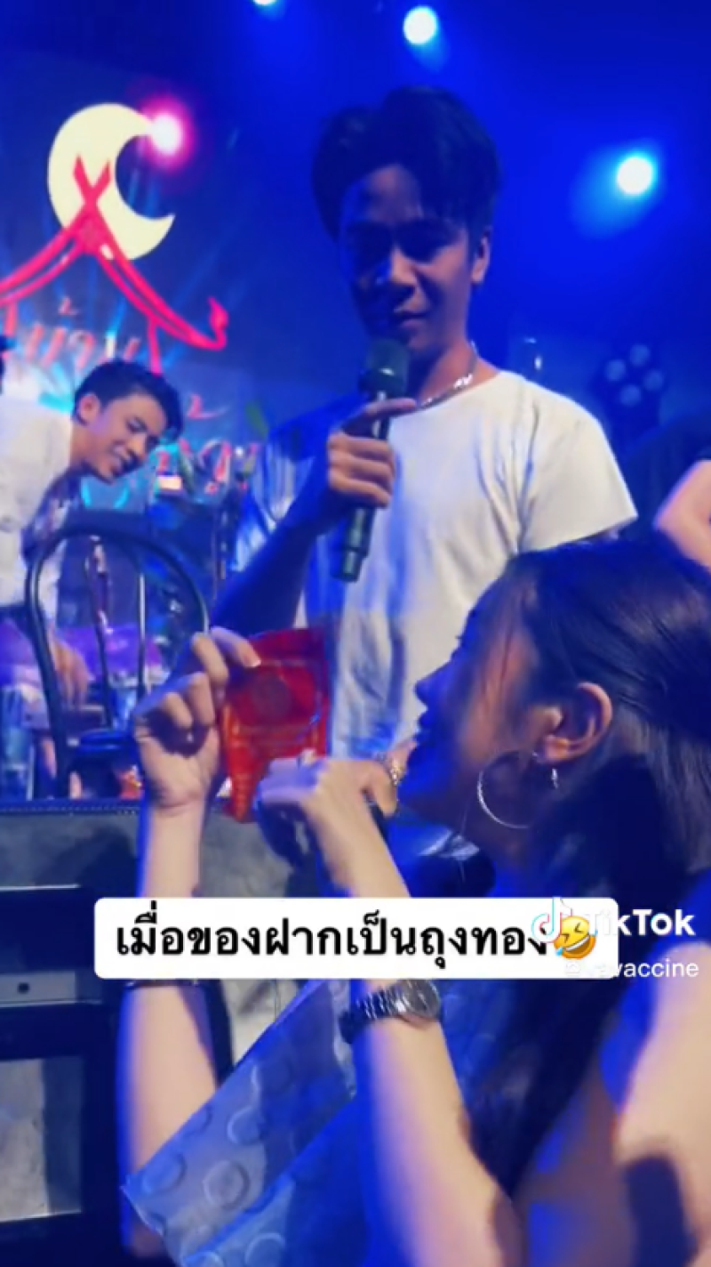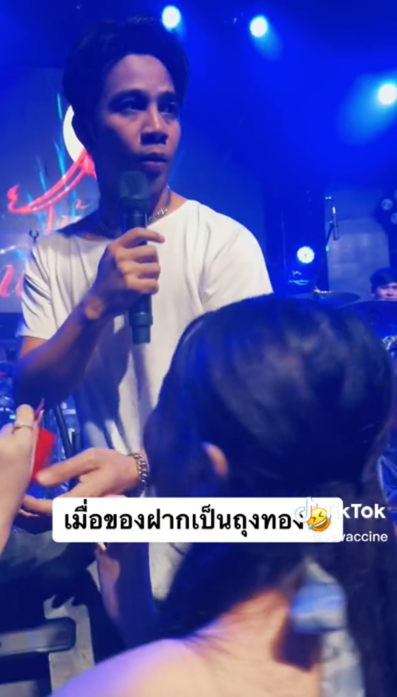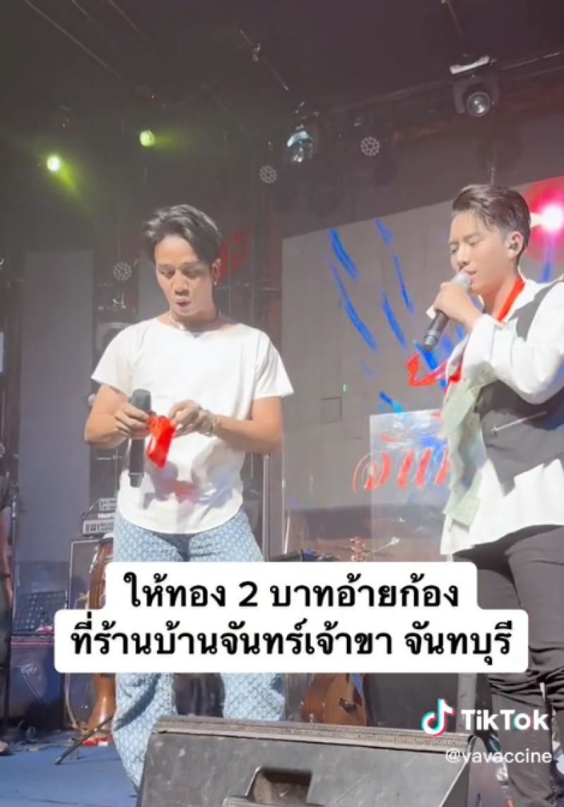 เรียกได้ว่ากลายเป็นอีกหนึ่งเรื่องราวที่เรียกเสียงฮาในโลกออนไลน์ หลังจากที่ผู้ใช้ tiktok รายหนึ่ง ได้มีการโพสต์คลิปเหตุการณ์หน้าเวที ขณะที่สาวรายหนึ่งได้ยื่นถุงทองให้กับนักร้องเพลงลูกทุ่งชื่นดังอย่าง ก้อง ห้วยไร่ พร้อมตะโกนว่า 2 บาท เมื่อนักร้องหนุ่มเห็นจึงรีบเข้ามารับถุงทองจากสาวคนนี้ พอก้อง ห้วยไร่ได้ถุงทอง ก็ขิงเพื่อนๆในวงไปตามระเบียบ แต่งานนี้เกิดคดีพลิก เมื่อนักก้อง ห้วยไร่ ได้เปิดถุงทองออกดู ปรากฎว่าในถุงทองนั้นเป็นเหรียญมูลค่า 2 บาท ทำเอาฮาลั่นกันทั้งเวที