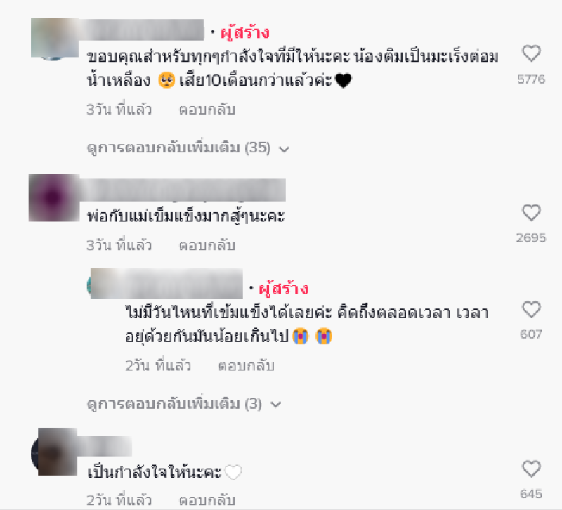 เรียกได้ว่าเป็นอีกหนึ่งเรื่องราวที่เรียกน้ำตาจากชาวโซเชียล ในช่วงเทศกาลวันลอยกระทงที่ผ่านมา หลายคนได้มีโอกาสพาครอบครัวไปลอยกระทง แต่ก็มีอีกมุมที่วันลอยกระทงนั้น เป็นวันที่ไม่เหมือนเดิมอีกต่อไป โดยผู้ใช้บัญชี Tiktok ท่านหนึ่ง ได้มีการเผยคลิปคุณพ่อกับคุณแม่ นำกระทงมาให้ลูกชายได้ลอยในกะละมัง เนื่องจากในขณะนั้นน้องรักษาตัวอยู่ที่โรงพยาบาล โดยเป็นภาพความทรงจำที่คุณพ่อกับคุณแม่เก็บไว้ เพื่อรำลึกถึงลูกชายผู้เป็นที่รัก ซึ่งปัจจุบันน้องได้จากไปแล้วเมื่อหลายเดือนก่อน ในขณะที่ชาวโซเชียลต่างพากันเข้ามาให้กำลังใจกันเป็นจำนวนมาก ทางทีมงานก็ขอเป็นกำลังใจให้กับทางครอบครัวด้วยนะคะ