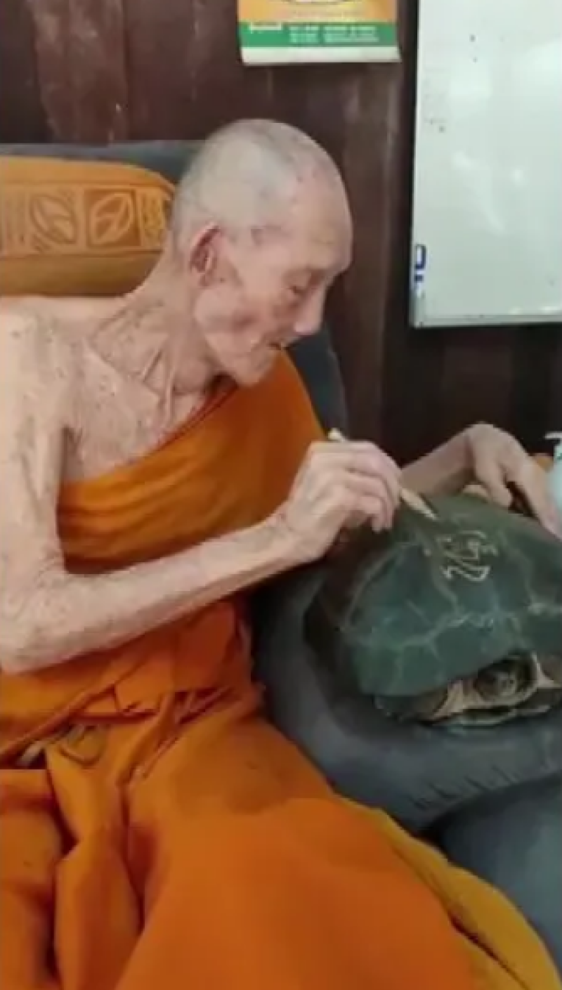 ชาวบ้านฮือฮา เต่า 100 ปีเดินเข้ากุฎิ พบหลวงปู่ฮก ไม่พลาดแฮ่ส่องเลข