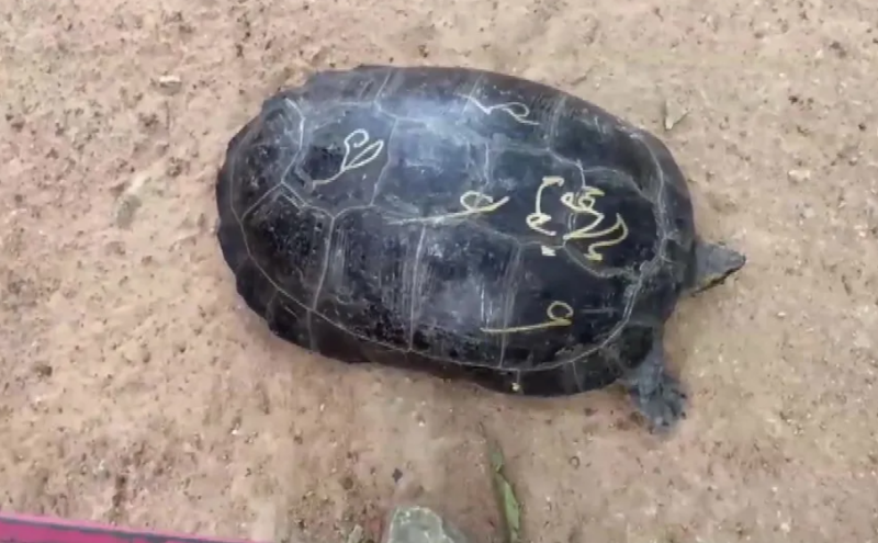 จากนั้นหลวงปู่ได้ใช้ปากกาเขียนสลักลงบนกระดอง ก่อนที่จะให้นำเต่าลงมาวางลงกับพื้น และตั้งใจว่าจะนำไปปล่อยที่สำนักสงฆ์แห่งหนึ่งซึ่งอยู่ไม่ห่างกัน ซึ่งไม่ใช่ครั้งแรกที่เต่าเดินเข้ามาภายในวัด