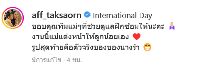 ภาพข่าวบันเทิง - เรียกได้ว่าเป็นอีกหนึ่งคู่แม่ลูกขวัญใจมหาชน สำหรับน้องปีใหม่ ลูกสาว ของคุณแม่คนสวยอย่าง แอฟ ทักษอร ล่าสุดคุณแม่ แอฟ ทักษอร ได้เผยโมเมนต์โพสต์ภาพคู่ น้องปีใหม่ ที่ได้เข้าร่วมกิจกรรมการแสดงของโรงเรียน โดยงานนี้ คุณแม่แอฟ ได้ทำการลงมือแต่งหน้า เนรมิตความสวยให้เองกับมือ บอกเลยว่านางรำตัวน้อยของคุณแม่แอฟ ยิ่งโตยิ่งสวยได้แม่มากเลยจ้า