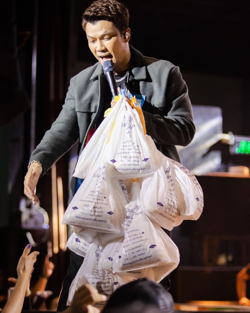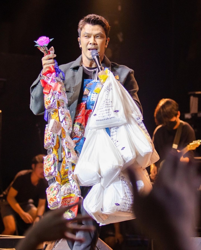 ภาพข่าวบันเทิง - เรียกได้ว่าเป็นอีกหนึ่งเรื่องราวที่เรียกเสียงฮาหนักมาก ว่าด้วยเรื่องของพวงมาลัยที่แฟนเพลงนั้น จะนำมามอบให้กับศิลปินที่ตนเองชอบ บางคนก็ได้เงินหลายหมื่นหลายพันบาท แต่บางคนก็ได้ของกินของใช้ ซึ่งก็มีมาให้เห็นมากขึ้นเรื่อยๆ อย่างเช่นนักร้องคนดังอย่าง หนุ่ม กะลา ที่ล่าสุดได้มีการโพสต์ภาพในอินสตาแกรม เป็นภาพที่เจ้าตัวกำลังยืนร้องเพลง แต่พอโฟกัสที่พวงมาลัย บอกเลยว่าคุ้นตามาก งานนี้ทำเอาแฟนๆต่างแซวว่าเป็น หนุ่ม พลังใบ