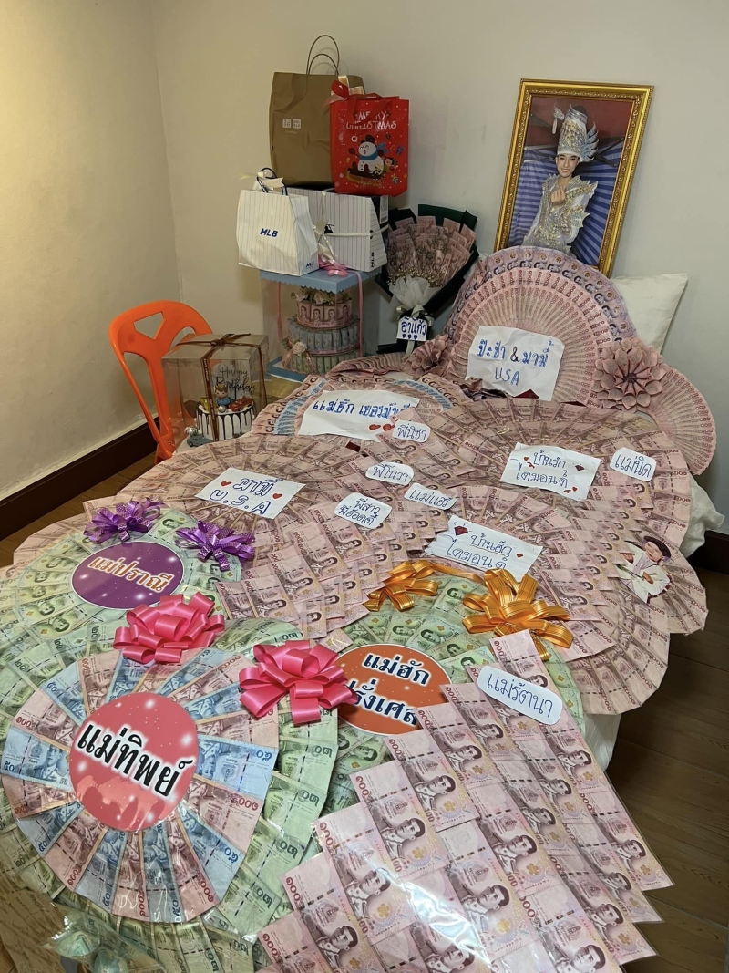 งานนี้ทำเอาแฟนๆต่างพากันฮือฮาโฟกัสพวงมาลัยของน้องไดมอนด์ ที่ได้รับมาจากบรรดาแม่ยก ซึ่งเป็นเงินสดจำนวนมากมายนับไม่ถ้วน เห็นแบบนี้แล้วบอกเลยว่าลูกไม้หล่นไม่ไกลต้นจริงๆ